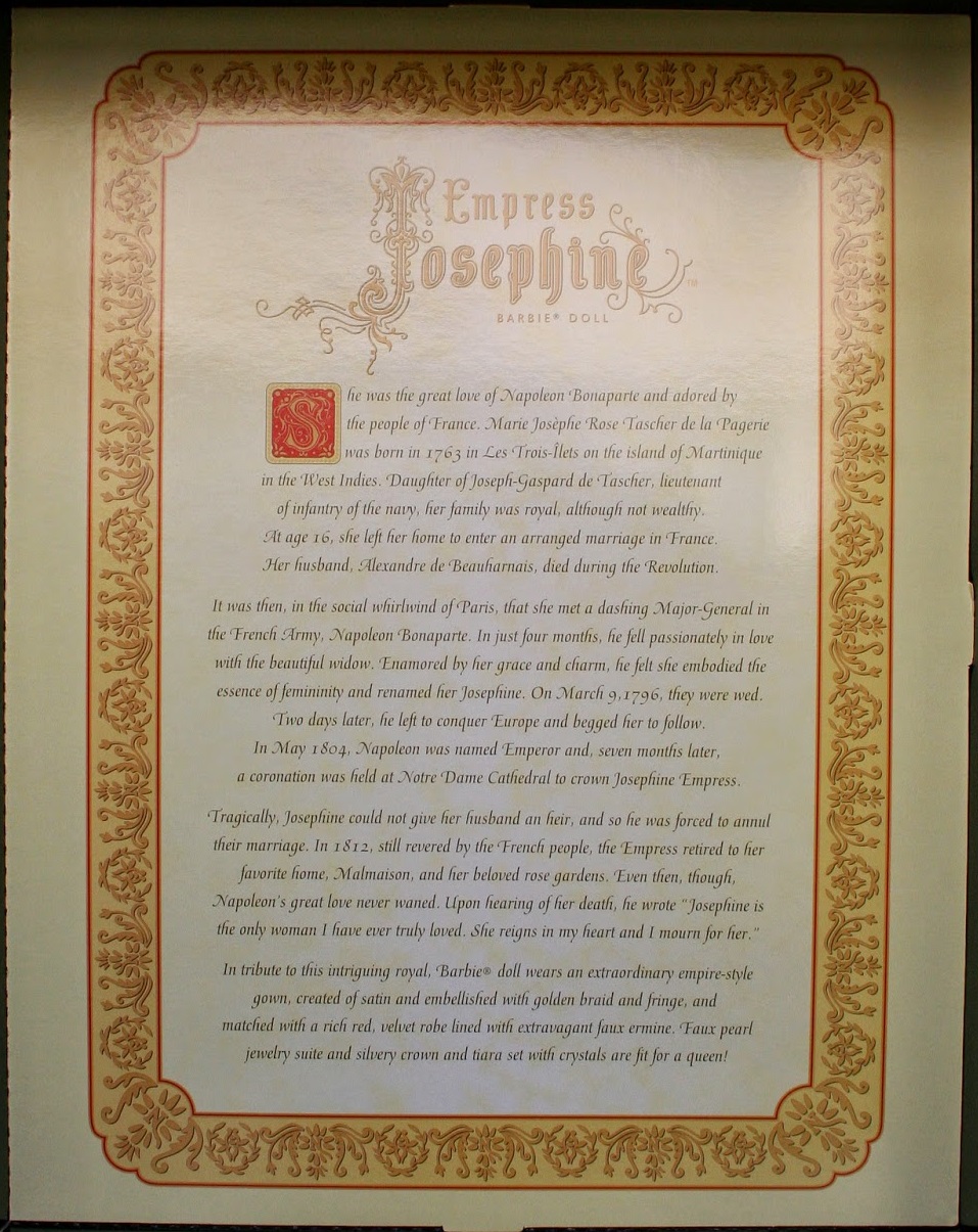 Она была большой любовью Наполеона Бонапарта и почиталась народом Франции. Мария Жозеф Роуз Ташер де ла Пажери родилась в 1763 году в Труа-Иле на острове Мартиника в Вест-Индии. Дочь Жозефа-Гаспара де Ташера, лейтенанта пехоты военно-морского флота, она происходила из королевской семьи, хотя и небогатой. В возрасте 16 лет она покинула свой дом, чтобы вступить в брак по расчету во Франции. Ее муж, Александр де Богарне, погиб во время революции.