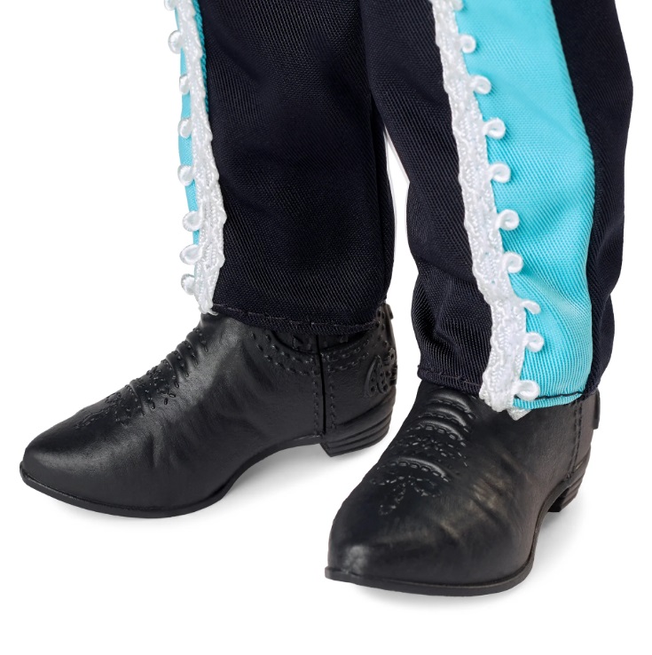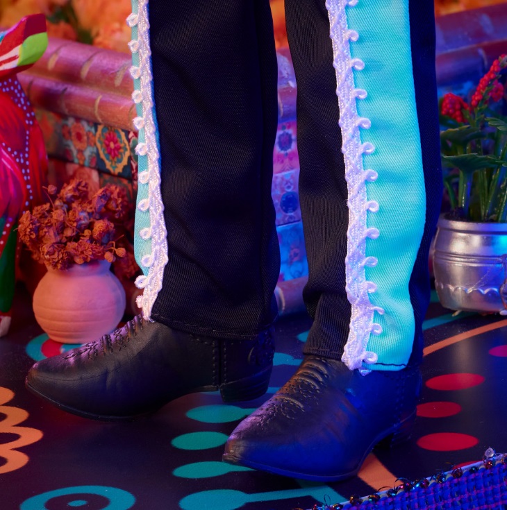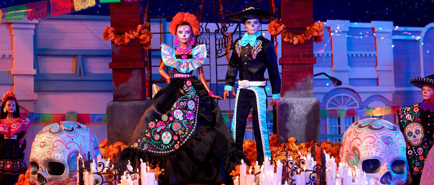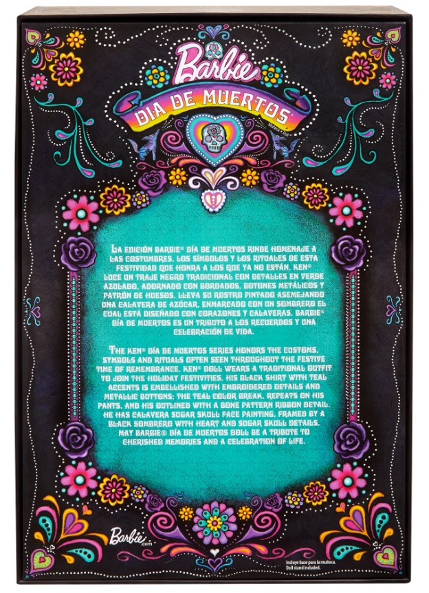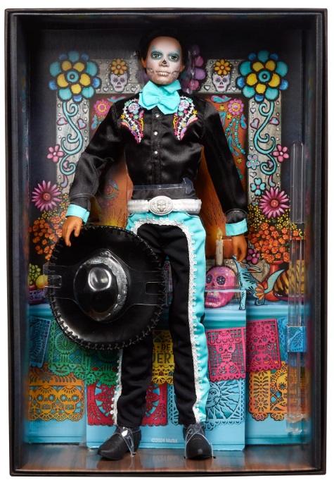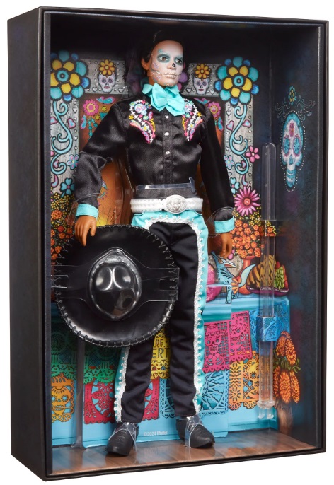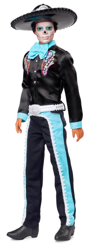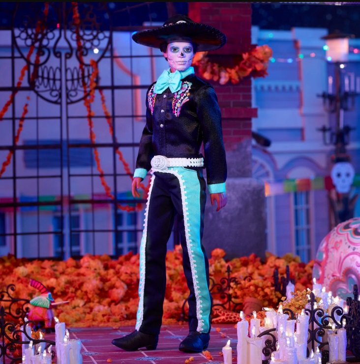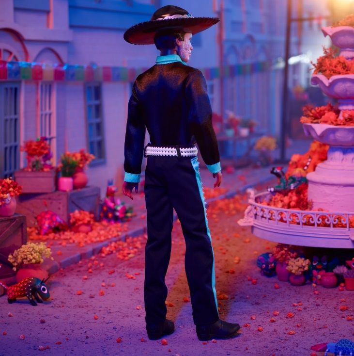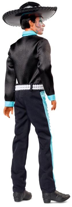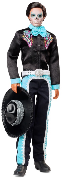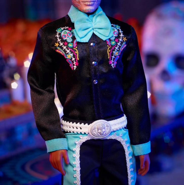 Кен выглядит потрясающе в черном атласном костюме с бирюзовыми вставками и вышитыми деталями. Раскрашенное лицо в стиле "Калавера", серебряный пояс и широкополое сомбреро дополняют праздничный образ. Несмотря на то, что куклы Барби и Кен продаются отдельно, они дополняют друг друга, что делает их идеальным набором и отличным подарком на память, который подарит радость и восхищение!