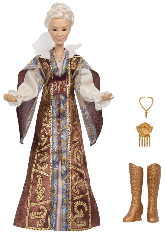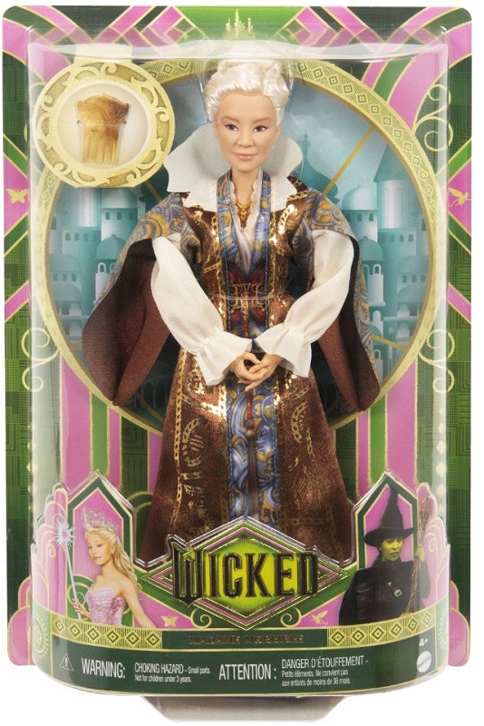 Добро пожаловать в Университет Шиз! Вдохновленная фильмом Universal Pictures "Злая", куколка мадам Моррибл готова принять у себя и обучать своих студентов в престижном университете Шиз. Модная кукла одета в съемную форму директрисы, вдохновленную фильмами, включая экстравагантное платье в пол отделкой из золотой тесьмы по подолу и воротником-стойкой. У мадам Моррибл также есть коричневые сапожки и яркое ожерелье с драгоценными камнями. Ее платиновые волосы собраны сзади в сложную прическу заколкой. Поклонники наверняка захотят собрать всех кукол из страны Оз!