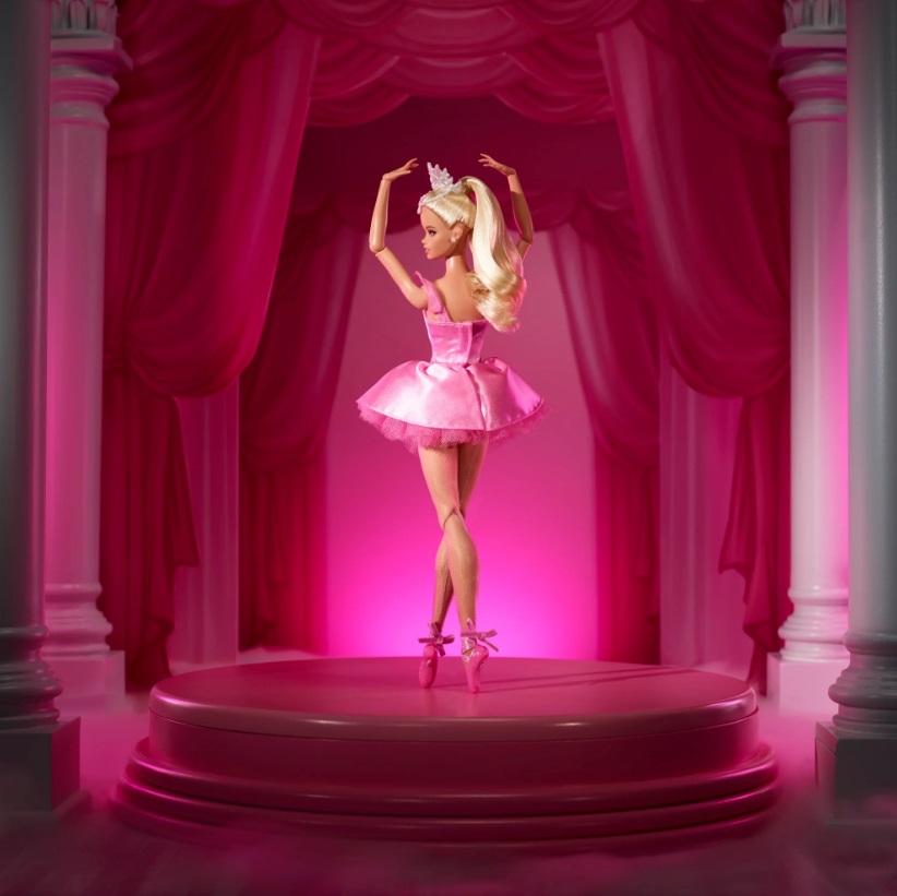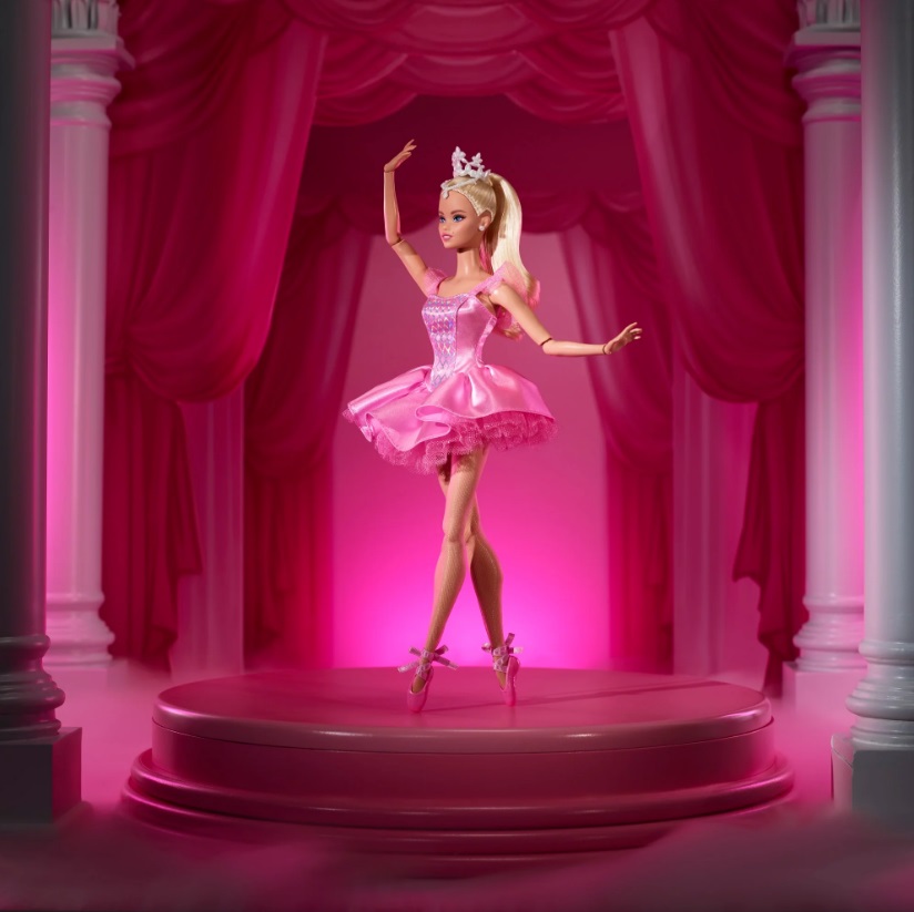Эта прекрасная кукла Барби готова к выступлению в атласном костюме балерины самого красивого розового оттенка и многослойной юбке из тюля в тон. Великолепная сверкающая корона, серьги в виде жемчужин, колготки и розовые пуанты - вот последние штрихи. Гибкие суставы на плечах, локтях, запястьях, бедрах и коленях открывают бесконечные возможности для позирования и потрясающей хореографии.