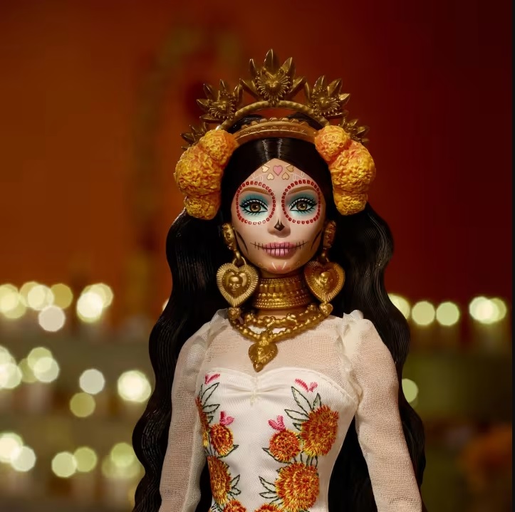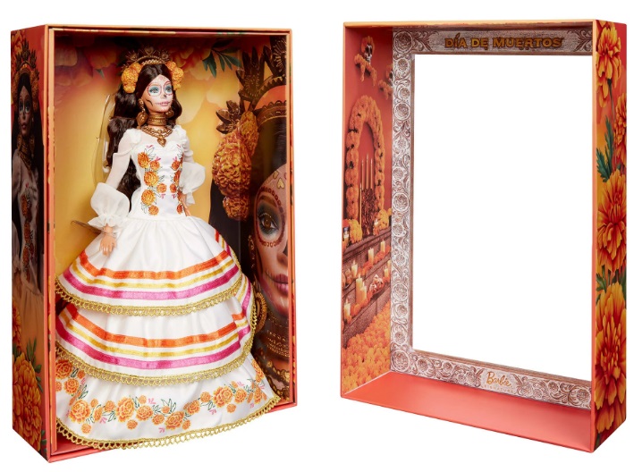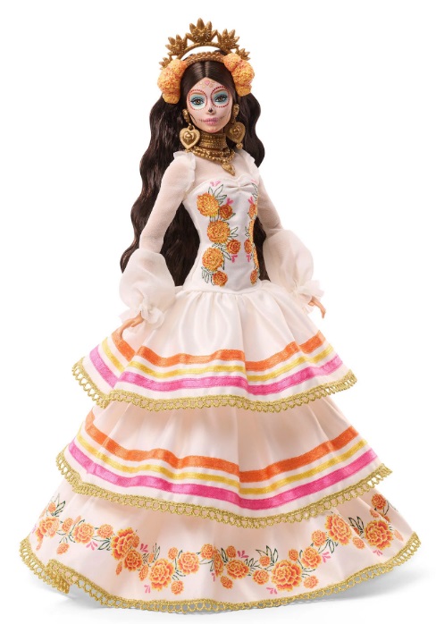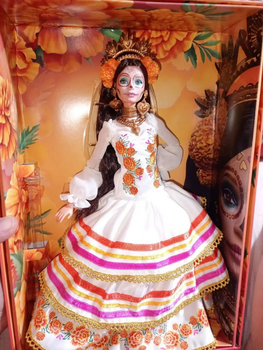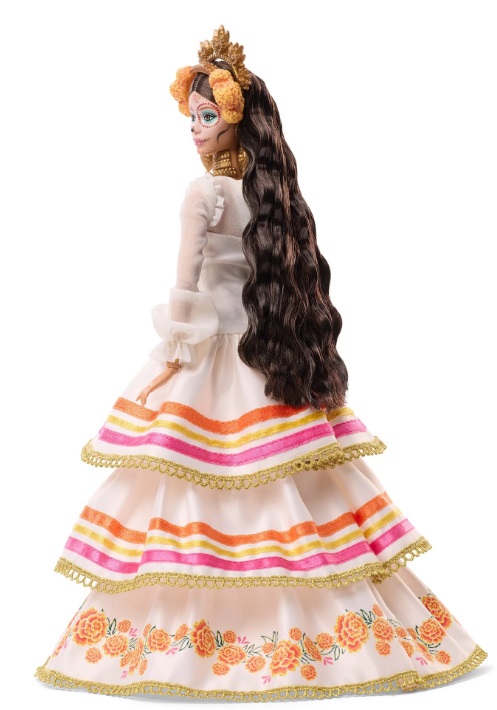 Платье куклы Барби создано по мотивам цветка бархатца, который традиционно используется в мексиканской культуре для украшения алтарей и могил близких людей, которые по повериям притягивают души умерших. В знак теплого приема как живым, так и умершим, эти цветы украшают лиф и подол платья, а также корону, обрамляющую поразительно раскрашенное лицо куклы в стиле "Калавера".