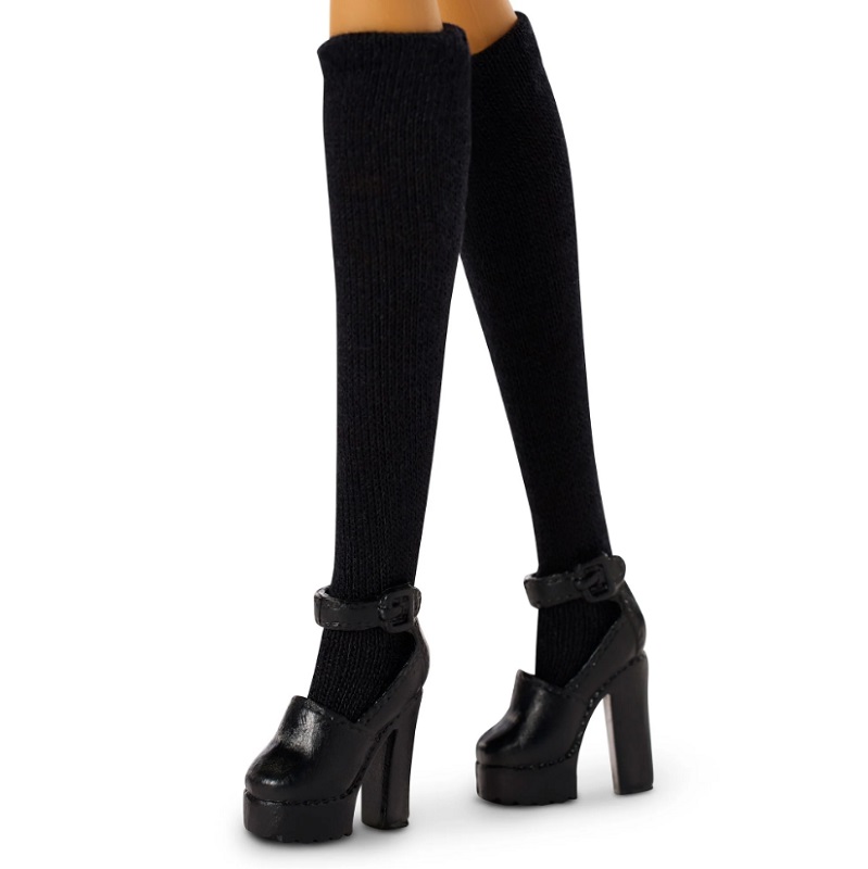 В комплекте: кукла, топ, юбка, пиджак, гольфы, цилиндр, серьги, туфли, телефон, сертификат подлинности, подставка, упаковка