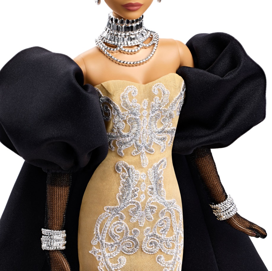 Четвертая кукла из коллекции "в Дизайнерском стиле" Mattel демонстрирует потрясающие творческие таланты Линды Кьяу-Мершон. Эта коллекционная кукла Барби, воплотившая в жизнь образ своей мечты на красной дорожке, выглядит потрясающе в платье цвета песочных часов телесного цвета с серебристой вышивкой. Поверх платья Линда добавила эффектные пышные рукава с эффектным шлейфом длиной до пола и прозрачные перчатки. В сочетании с эффектными серебристыми украшениями и гламурным макияжем кукла Барби готова к элегантному выходу в свет.