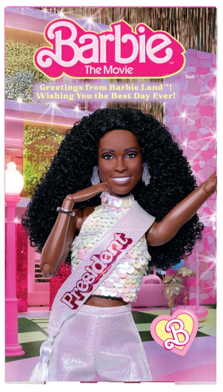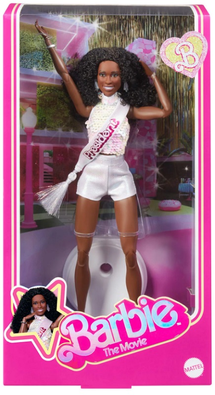 Mattel празднует вторую годовщину создания фильма Барби. В фильме представлены наряды, которыевы до сих пор не видели в кукольном мире. В начале фильма идет танцевальная вечеринка, и на дискотеку выходит не кто иной, как президент Барби. На ней президентский пояс, привлекающий внимание и олицетворяющий уверенность в себе, а ее мерцающий белый костюм-двойка состоит из укороченного топа без рукавов и шорт с высокой талией из переливающейся ткани.
