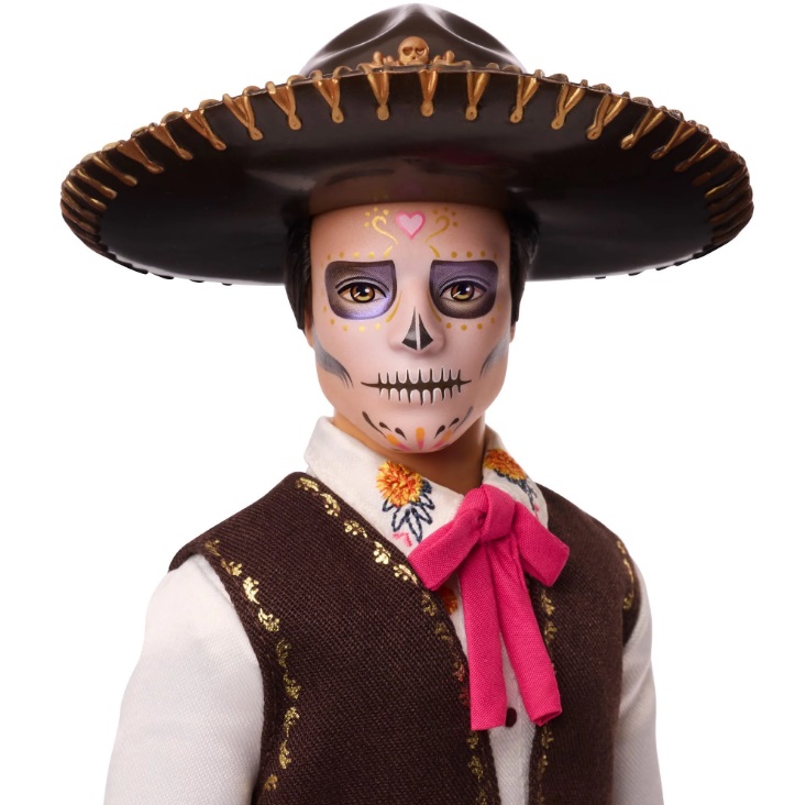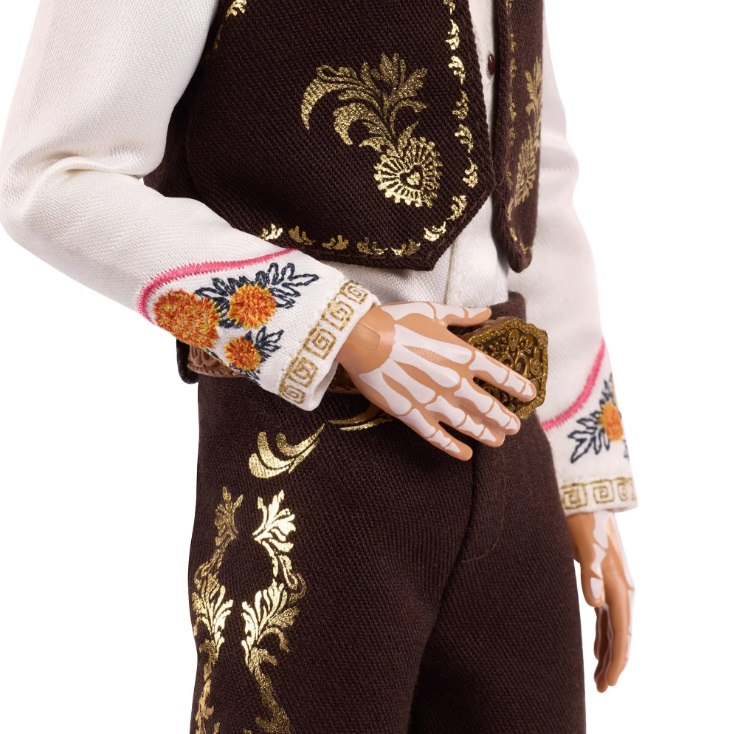 Наряд Кена создан по мотивам цветка бархатца, который традиционно используется в мексиканской культуре для украшения алтарей и могил близких людей, которые по повериям притягивают души умерших.