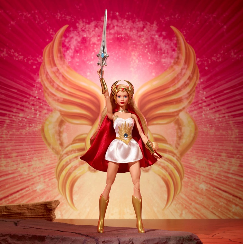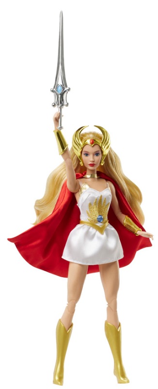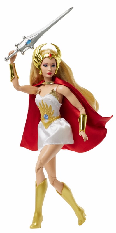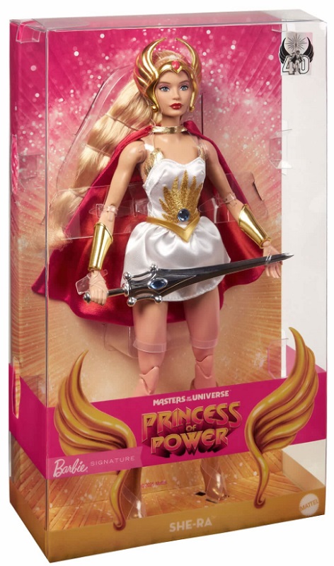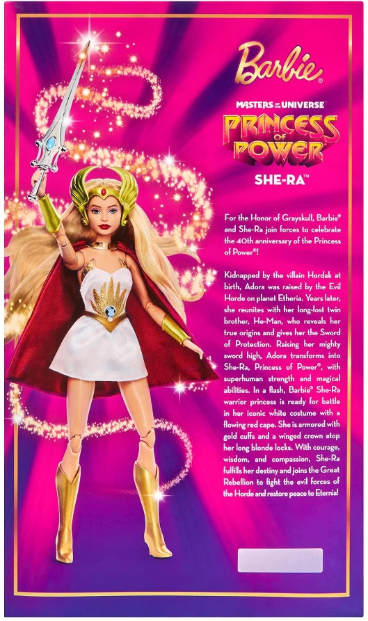 Вселенная Барби стала еще более героической. Легендарная Ше-Ра, принцесса Силы, отмечает в этом году свое 40-летие уникальным событием: она впервые появилась в образе куклы Барби. Ше-Ра величественна, как сама жизнь, она одета для защиты Этернии от орды злодеев в свое фирменное атласное белое платье, золотые сапоги, головной убор с крыльями и развевающуюся красную накидку, вооружена своим защитным мечом.