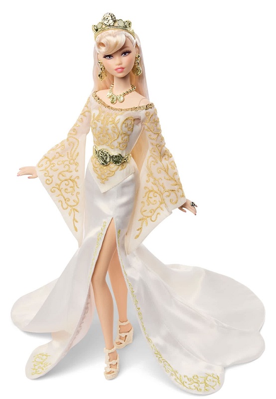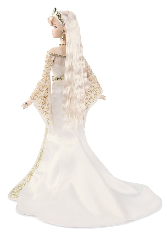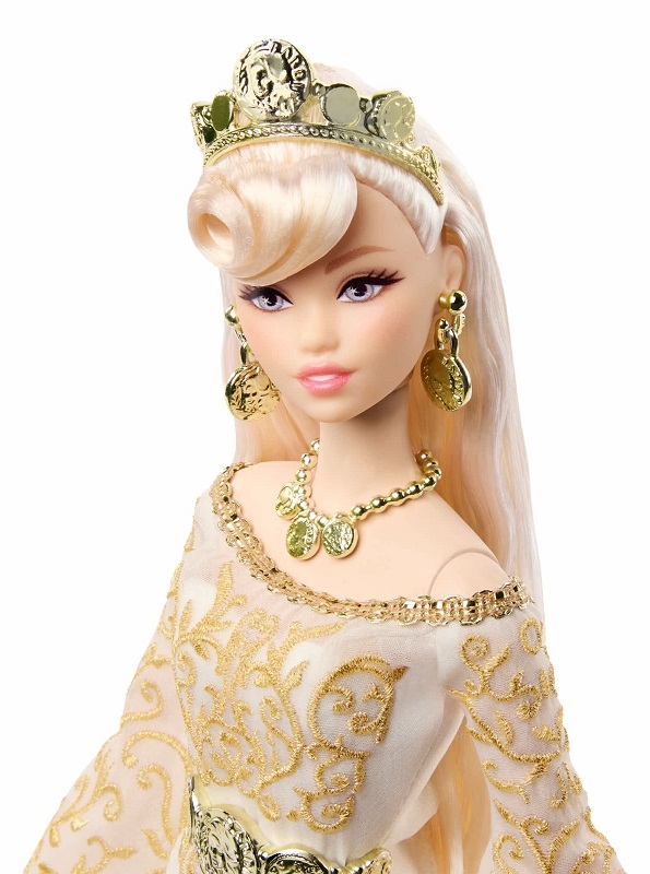 Познакомьтесь с богиней из фантастических миров. Mattel предоставили 59 членам Клуба Барби возможность выбрать, какую куклу они хотели бы добавить в свои коллекции. Их голоса привели к созданию этой царственной суперзвезды, вдохновленной богиней Фортуной. У нее потрясающая фигура, и она с головы до ног облачена в воздушное белое платье с бело-золотистыми вставками. Платье украшено эффектными расклешенными рукавами и высоким разрезом, а аксессуары напоминают золотые монеты - краеугольный камень богини, в образе которой она создана.