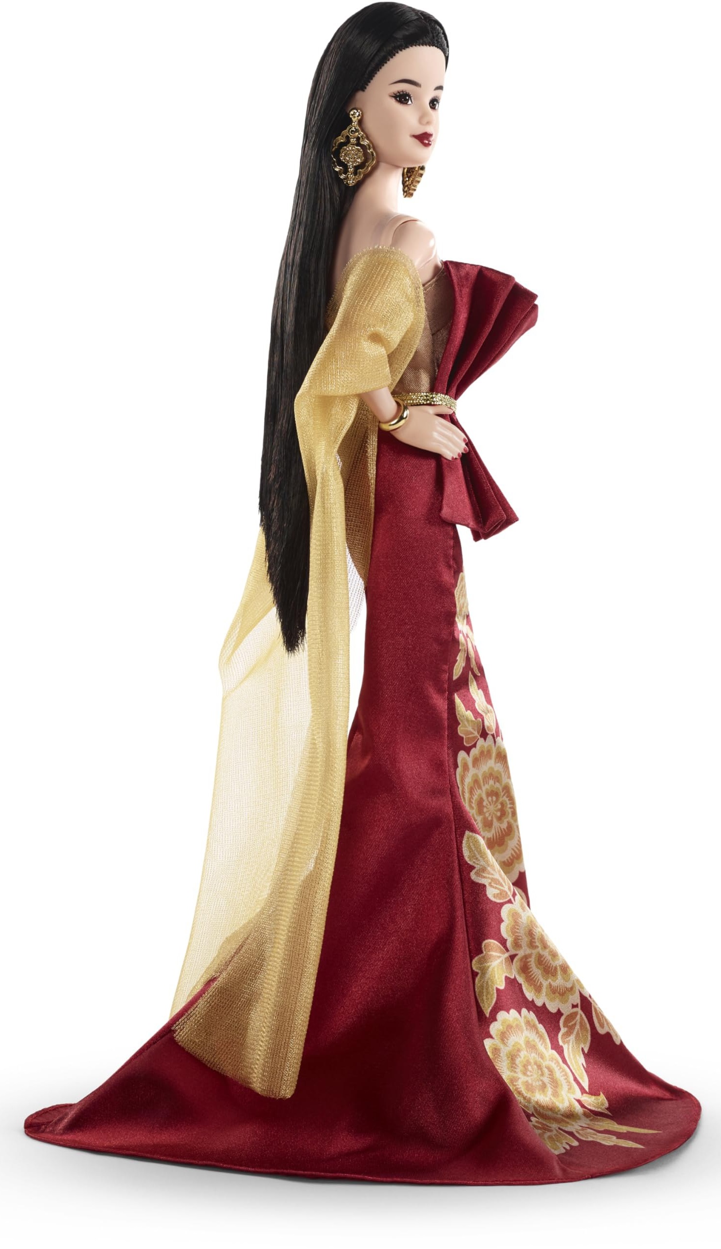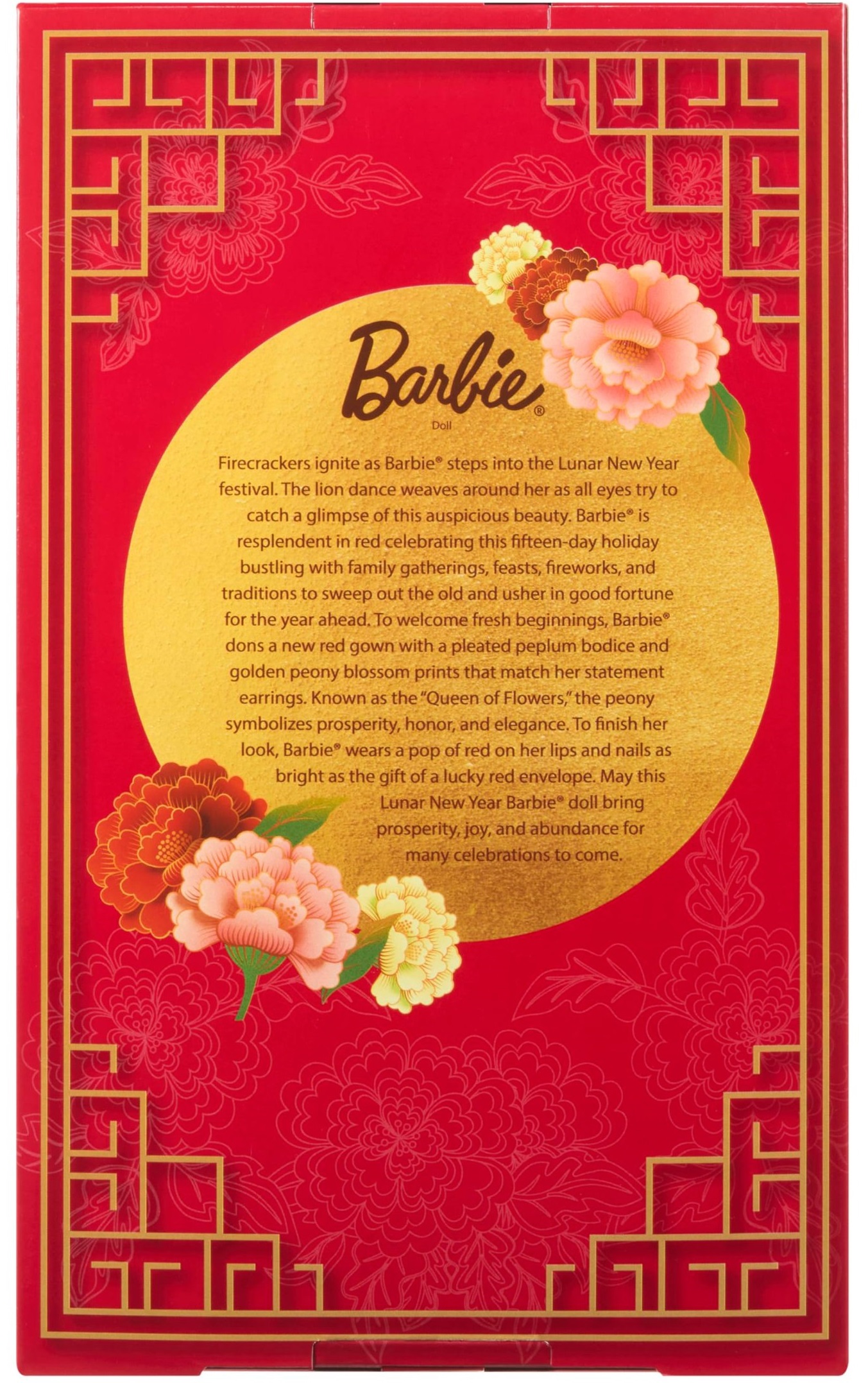 Когда Барби встречает праздник Лунного Нового года, зажигаются фейерверки. Все вокруг светится яркими огнями, и все глаза пытаются хоть мельком увидеть эту блестящую красотку! Барби блистает в красном, празднуя этот пятнадцатидневный праздник, наполненный семейными встречами, застольями, фейерверками и традициями, которые отметают старое и приносят удачу на весь предстоящий год. Чтобы поприветствовать новые начинания, Барби надела новое красное платье с плиссированным лифом-баской и принтом в виде золотистых пионов, которые сочетаются с ее эффектными серьгами.