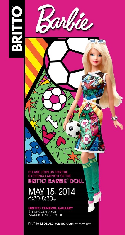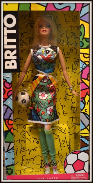Бразильский художник Ромеро Бритто знает, что нет невозможного! После того, как он придумал и нарисовал портрет Барби, он годами хотел претворить в жизнь воссоздание её образа. Наконец его мечта осуществилась! Характерной чертой куклы Барби Бритто Специального Издания является смелое, яркое и живописное платье, предающее две вещи, дорогие сердцу Бритто – Бразилию и футбол. Образ Бабри также дополняют туфли, длинные носки, браслет, солнечные очки и футбольный мяч. Кукла Барби Бритто станет замечательным дополнением Вашей коллекции!
